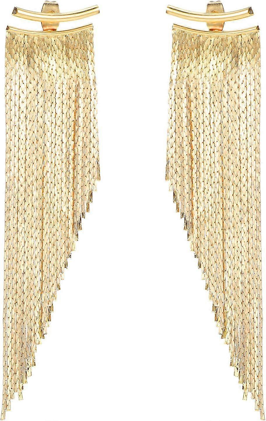 Packaging List You will receive a pair of gold tassel earrings, with oblique golden hanging streaming, so that your mix has a more colorful impact and hierarchyElegant Jewelry This gold statement earrings is elegant and exquisite, suitable for daily life. Wedding, theme parties, holidays, music festivals, dating, etc., easily bloom your charmComfortable to Wear The design of gold dangle earrings direct plugging+back buckle can be steadily fixed on your ears. The surface of the cuttings is smooth, which can effectively avoid ear pierced damage. It is also comfortable to wear for a long timeLow Allergic MaterialsThis gold statement earrings is made from high -quality copper materials. It is acid -resistant, alkaline -resistant, not easy to fade, not easy to deform, low allergiesBest Gift This long tassel earrings can bloom your charm and sexy. It is the best gift for birthday, Christmas, anniversary, Valentine's Day, wedding, etc