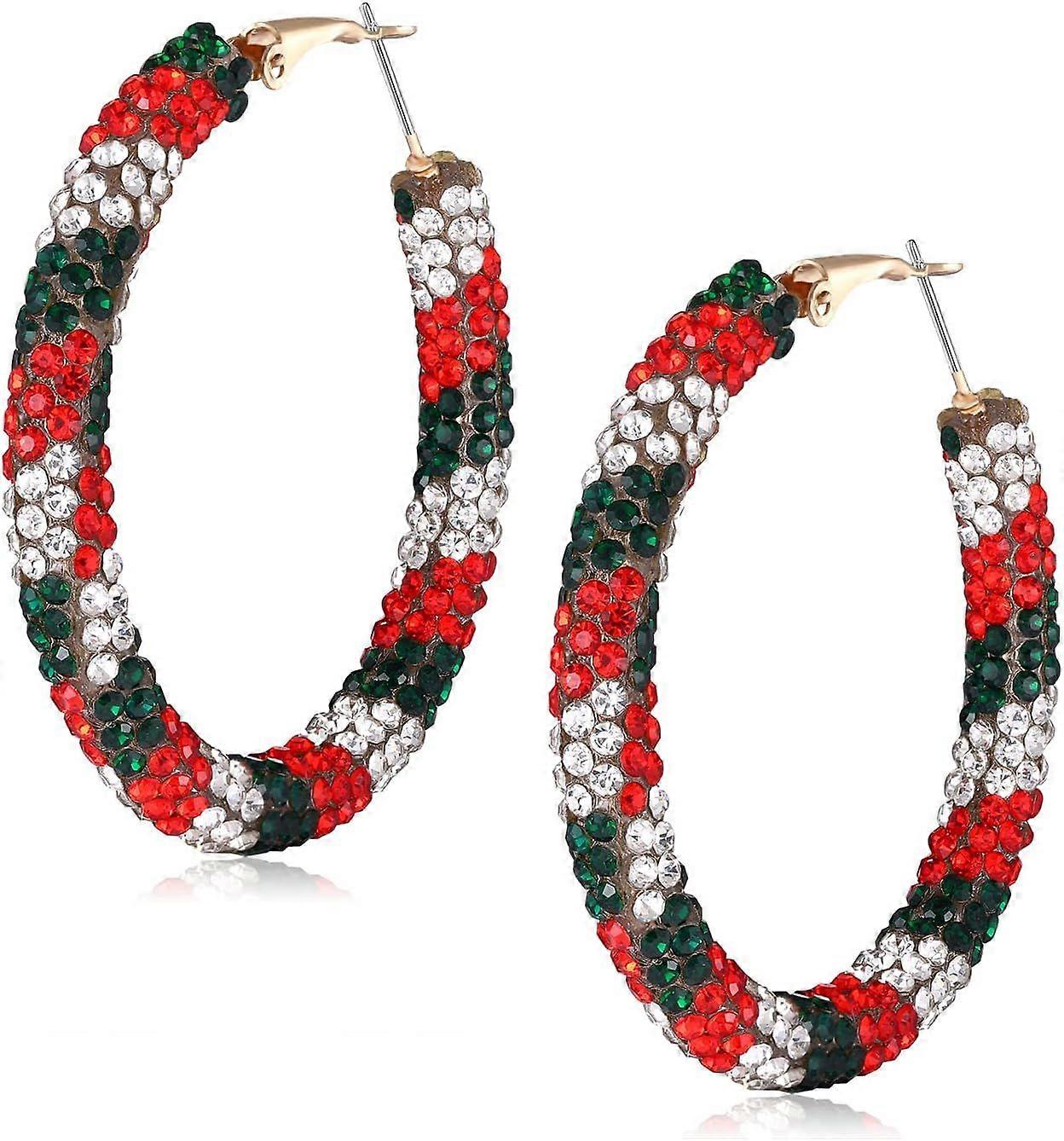 Glitter Hoop Earrings Bohemian Sparkle Resin Rhinestone Wrapped Hoop Dangle