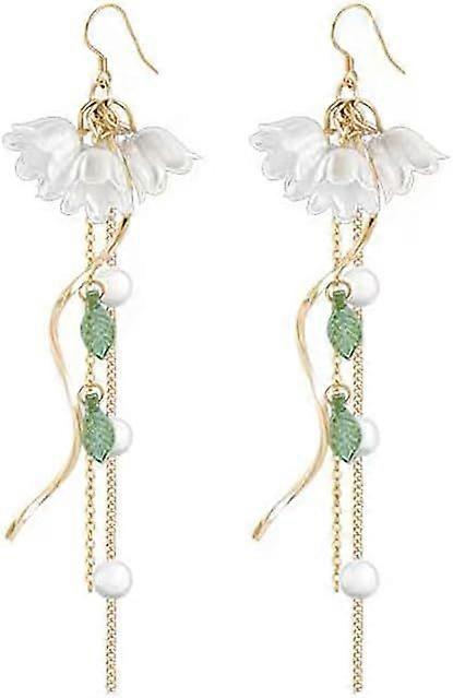 Dainty Bell Orchid Dangle Drop Earrings 14K Gold Plated Pearl Threader Tassel