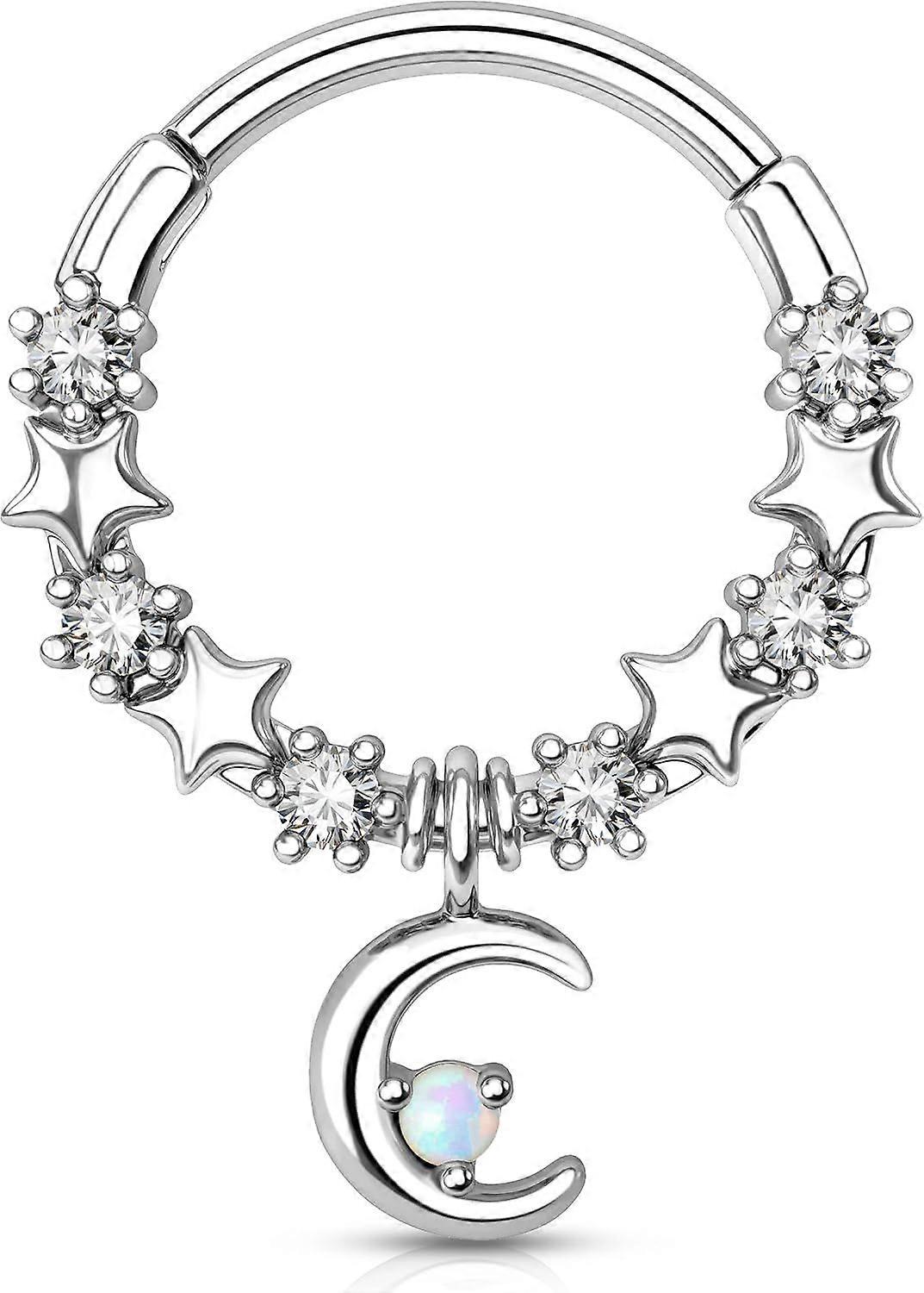 Septum Rings 16G Moon Septum Jewelry with Opal Clear CZ Surgical Steel 316L Star