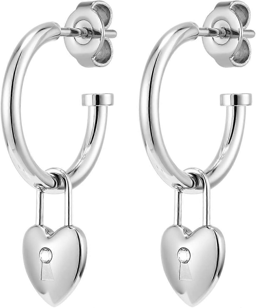 Jewelry - Women's Classic Collection - Locked Heart Hoop Earrings - Stainless
