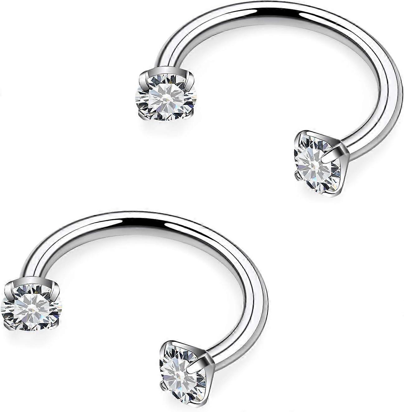 Horseshoe Nose Ring Surgical Steel Double Stud Nose Ring 18g Lip Rings Cubic