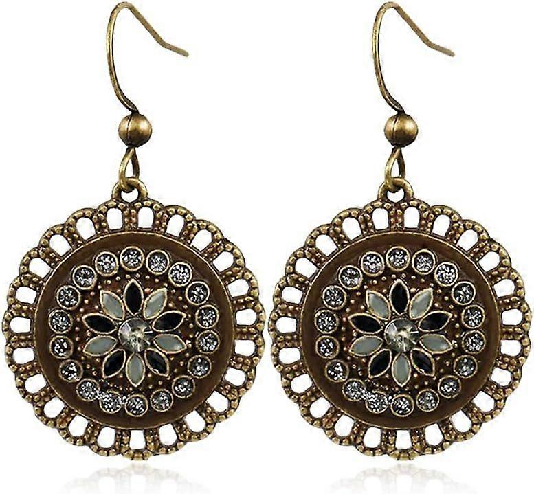 Bohemian Vintage Sliver Enamel Flower Circle Disc Lightweight Dangle Drop