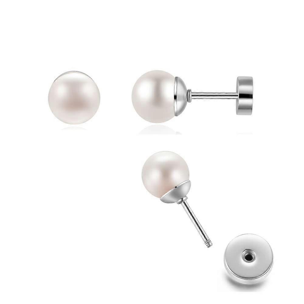 7mm Pearl Stud Earrings,Flat Screw Back Pearl Cartilage Helix Earrings 316L