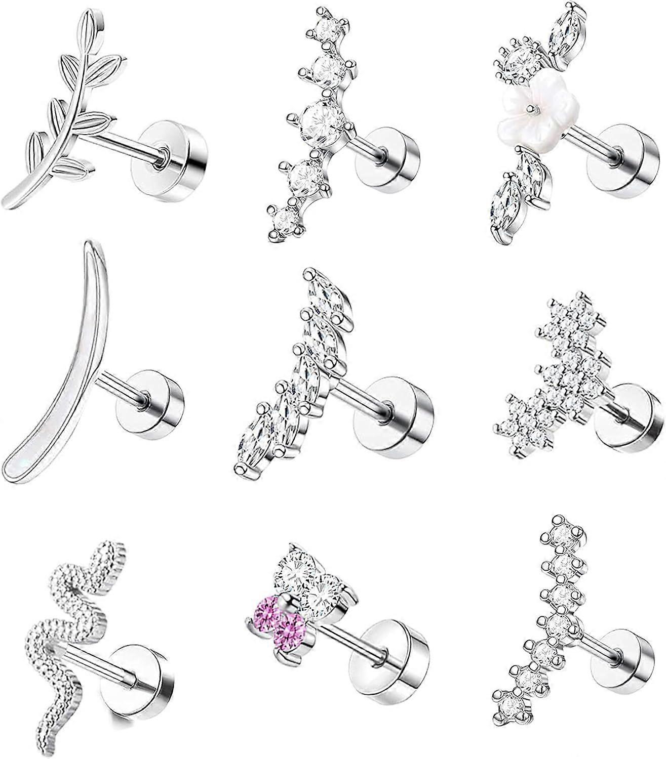 16G Cartilage Earrings Helix Piercing Jewelry for Women Stainless Steel Opal CZ