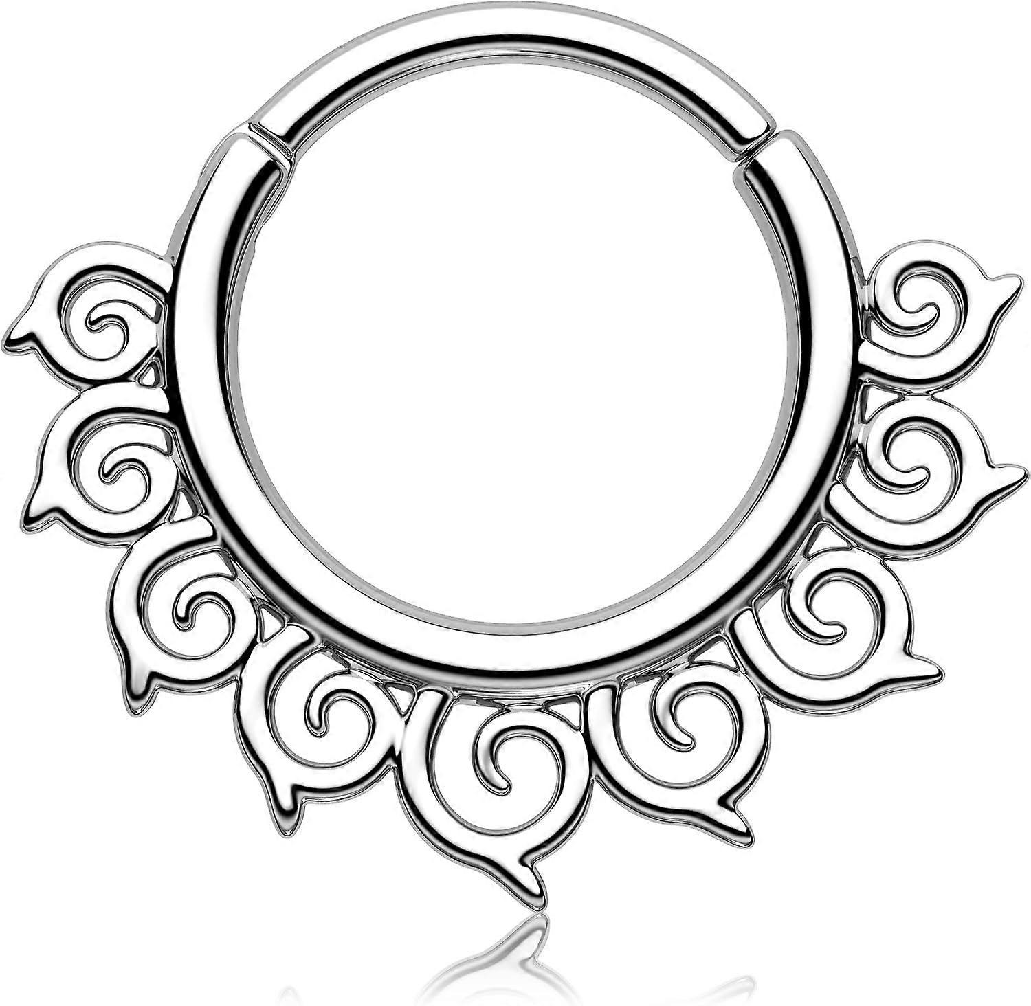 Material of Daith Earrings: 100% Stanless Steel, Hypoallergenic, Nickel and Lead-Free, Harmless to Your Piercing and Shorten the Healing Time of Piercing.Style of Septum Ring: One Order Include One Piece Septum Ring for Women. Different Color for You to Choose, Suitable for Many Occasions Wearing!Great Gift for Women Men: The Septum Ring can be Used as a Special Gift for Your Family and Friends on Special Occasions Such as Valentine's Day, Christmas Day, Halloween and soon.Design of Helix Earring: High Quality Precision Stainlees Steel 316L Hinged Segment Ring, Sparkling and Convenient to Wear. Elegant Design Enable You a Unique Fashionable Sense.Comfortable Gauge of Septum Jewelry: Bar Thickness: 16G/1.2mm; Inner Diameter: 10mm, Perfect for Septum Piercing Jewelry, Daith Piercing jewelry, Conch Piercing Jewelry, Helix Earrings, Cartilage Earrings, and More.