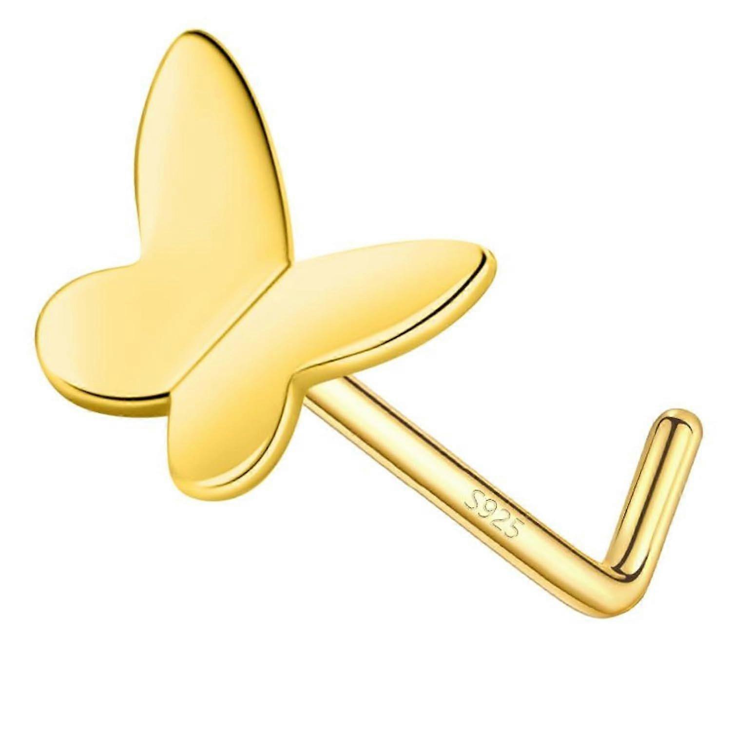 925 Sterling Silver Gold L Shaped Nose Rings Stud for Women - 14k Gold Plated 20g Heart/St