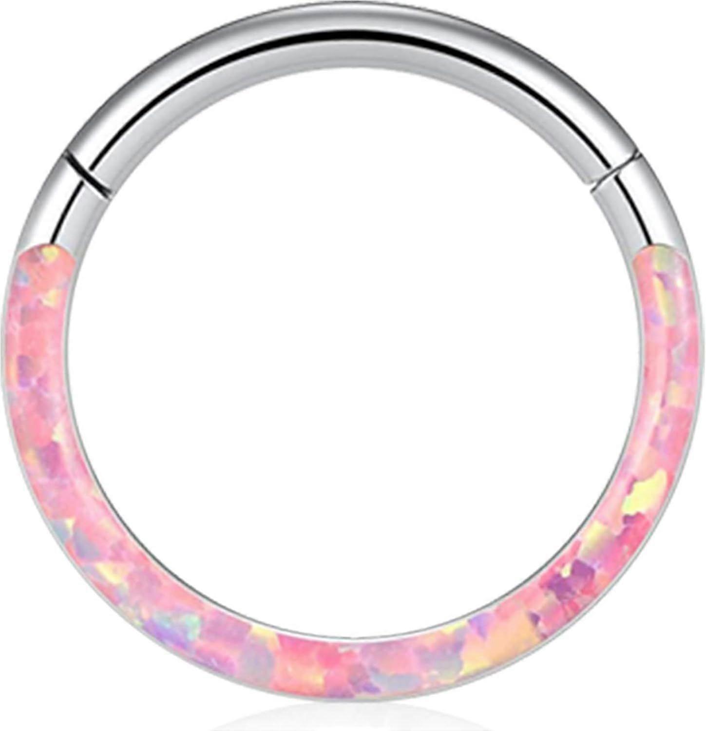 16G Opal Septum Rings Hoop Nose Ring Lip Rings Stainless Steel Hinged Segment