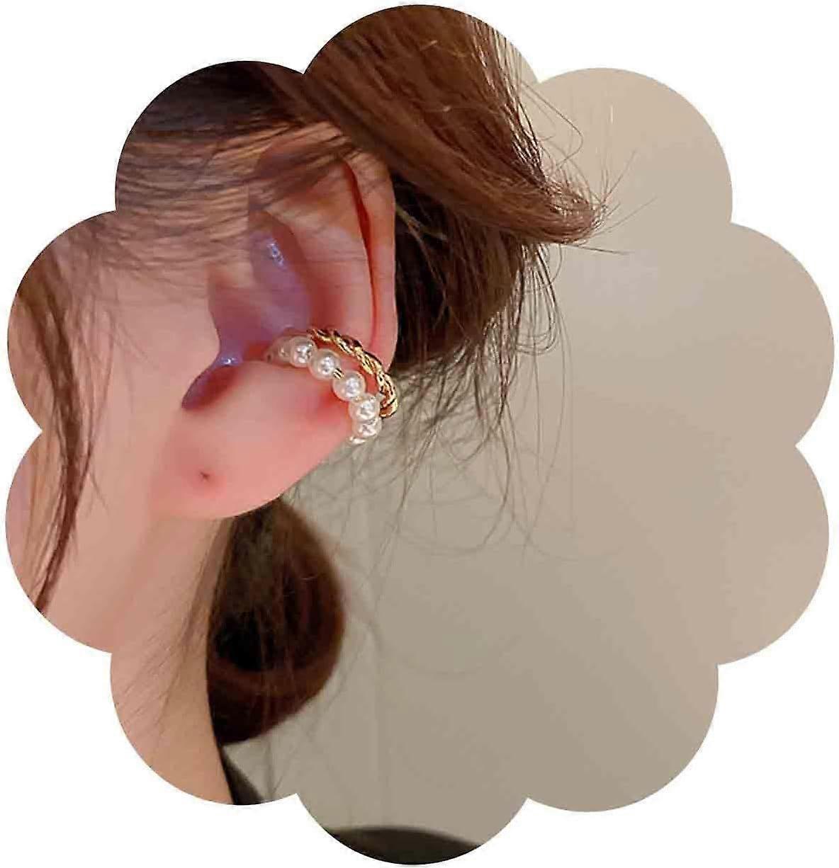 Boho Pearl Circle Cuff Earrings Gold Ring Helix Earrings Pearl Ear Cuff Earrings