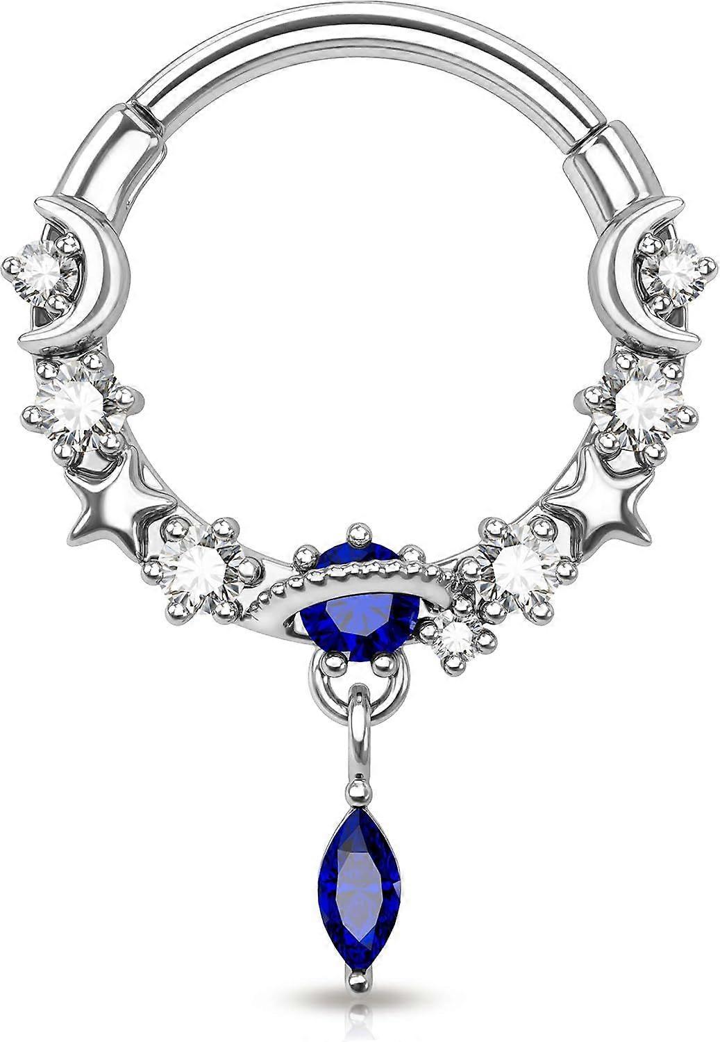 16G Septum Rings Dangle Septum Jewelry with Blue Planet Clear CZ Stainless Steel