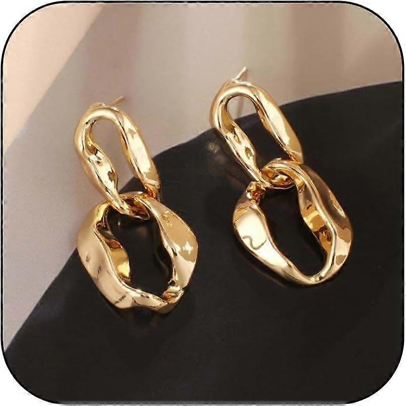 Gold Chunky Earrings for Women, Dainty Gold Irregular Circle Hoop Stud Earrings