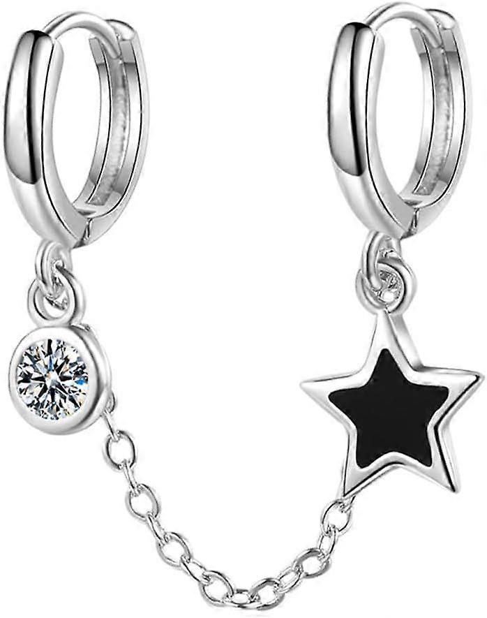 Chain Earrings for Women, Silver Color Black Star Zircon Dangle Double Ear Hole