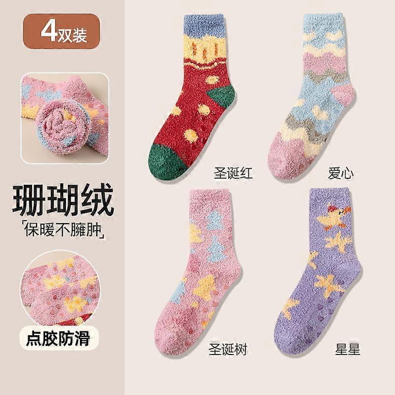 Ins Christmas Socks Children's Coral Fleece Socks Christmas Gifts Thickened Thermal Cartoon Sleep Sock Floor Sock