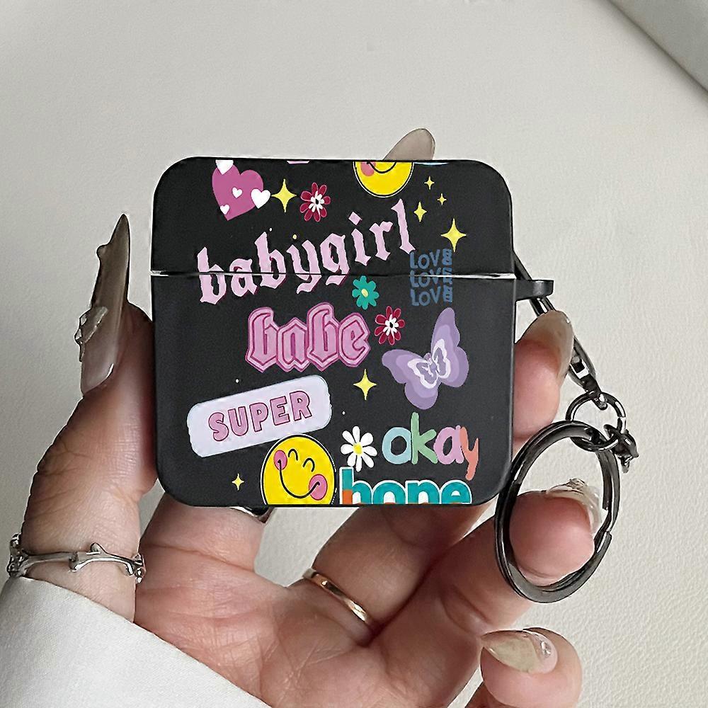 Colorful Elements Black Headphone Case for Airpods Pro 3/Pro 2/Pro, AirPods 4/3/1/2 Earphone Protective Hard Cover with Keychain