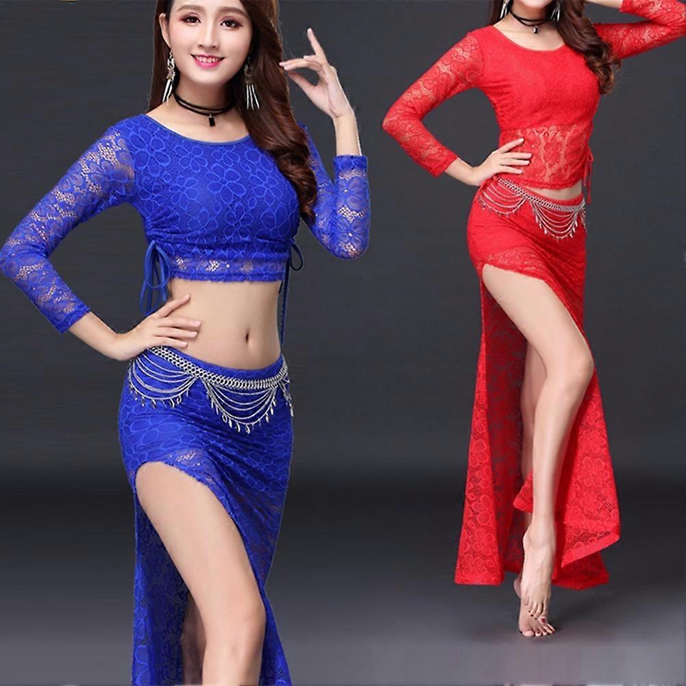 Belly Dance lace longsleeve lace Skirt Training full lace Practice Dance Costume