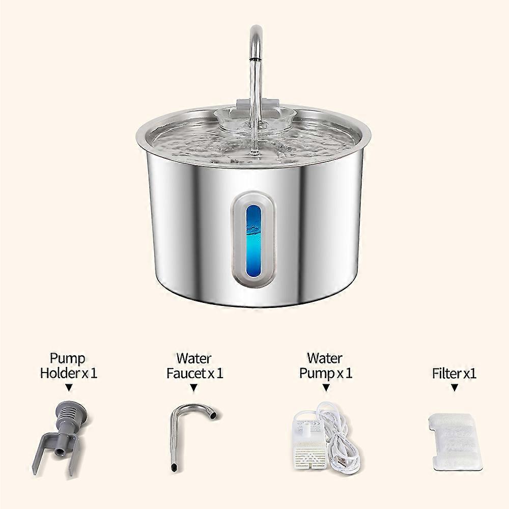 2.2L Stainless Steel Cat Water Fountain,Pet Water Dispenser With Filter,Dog Drinking Fountain For Cats,Ultra Quiet Water Pump