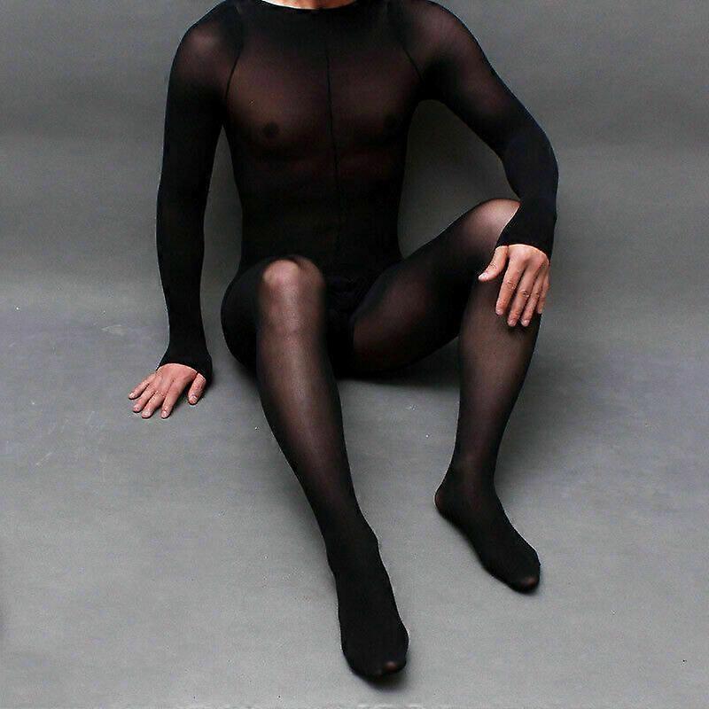 220Lbs Men Stretchy Full Bodystocking Sheer Long Sleeve Bodysuit Footed Jumpsuit