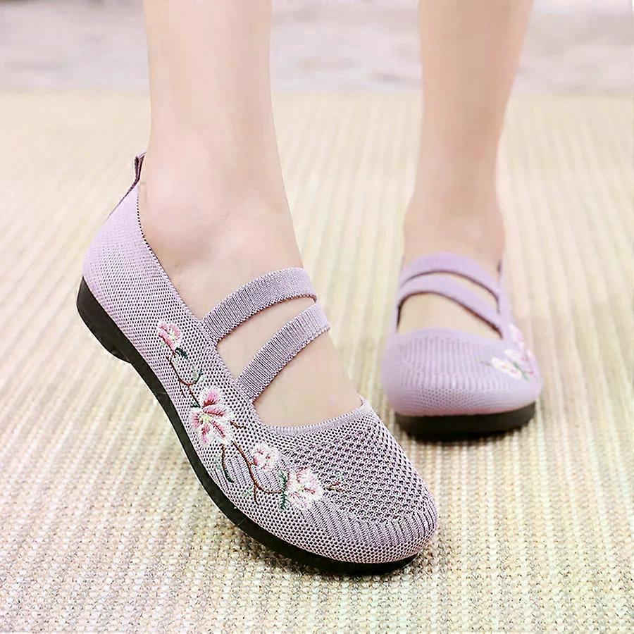 Women's Slip-on Flat Embroidered Shoes, Soft Sole Elastic Mom Shoes - Lightweight, Comfortable And Effortless Slips On 2025