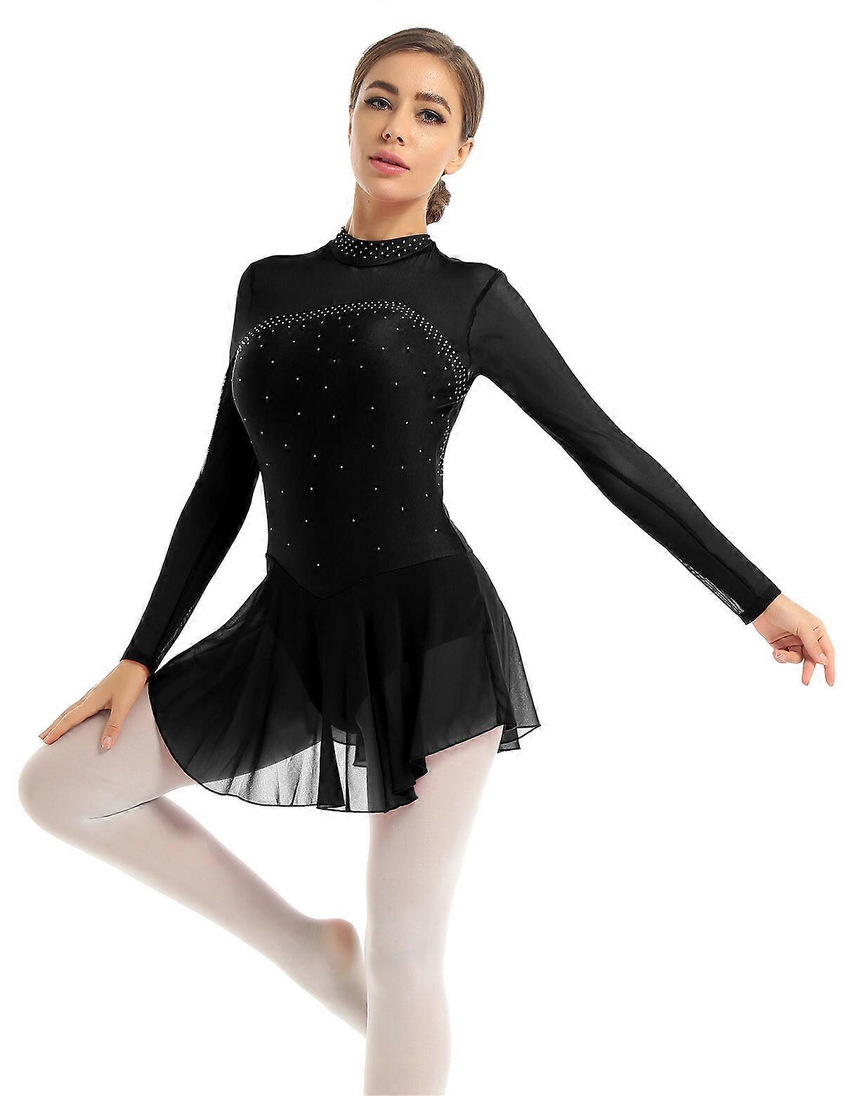 Womens Dance Leotard Ballet Dress Tutu Skirt Long Sleeve Bodysuit Dancewear