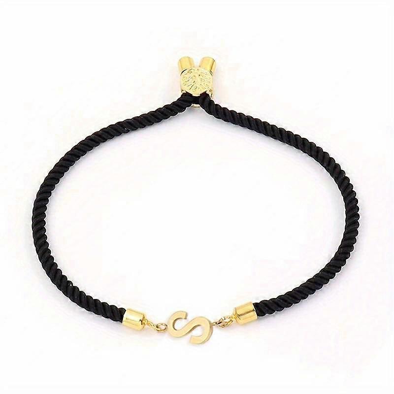 1pc Letter Beads Black Rope Bracelet Simple Classical Hand Rope Jewelry Decoration For Women Birthday Gift