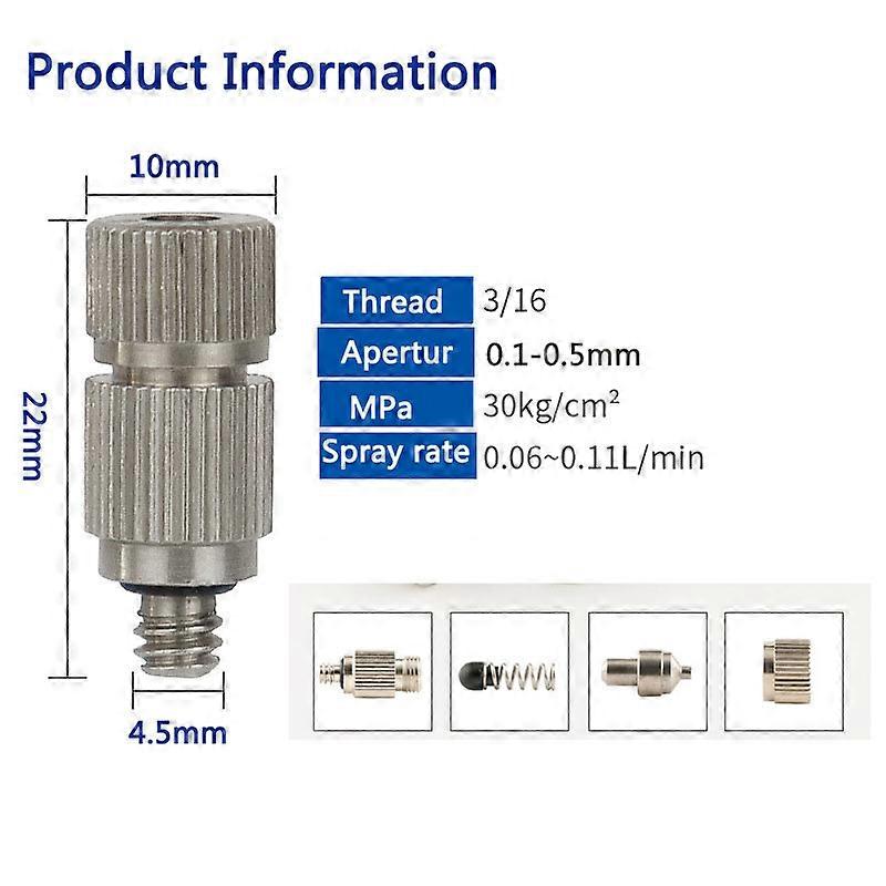 High Pressure Anti Drip Fogging Sprayers Misting Nozzle Stainless Steel Cooling Humidify Sprinklers Male Thread 3/16 inch 10Pcs