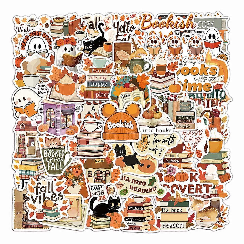 50PCS Bookish Autumn Graffiti Stickers Cartoon Cute Ghost Books Graffiti DIY Bookbook Notebook Stickers