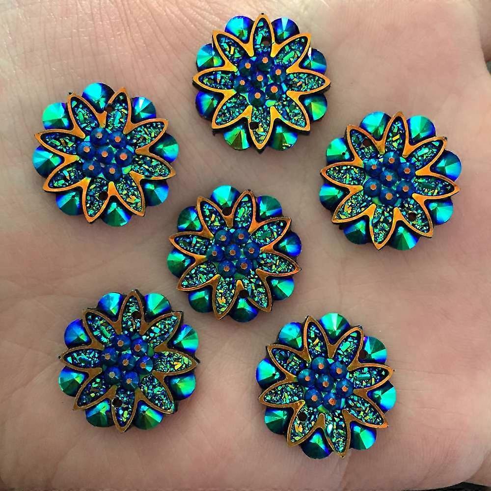 20pcs 18mm AB Resin Bling 3D Flower Flat back Rhinestone 2 Hole Applique Scrapbook DIY Wedding Decor Crafts Accessories Supplies