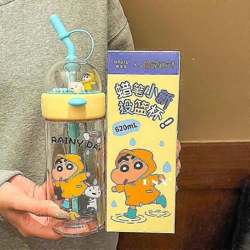 620ML Kawaii Crayon Shin-chan Water Bottle for School Portable Cartoon Anime Sippy Cup Creative Feeding Cups with Straws