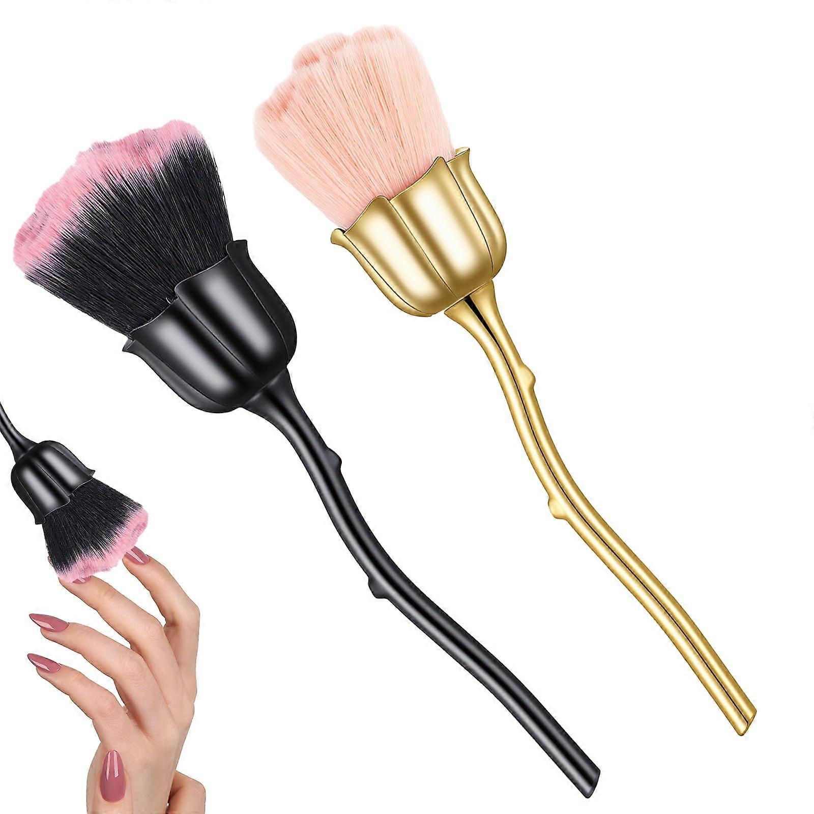 2 PCS Nail Dust Brush Rose Shape Soft Nylon Bristles for Manicure Cleaning and Makeup