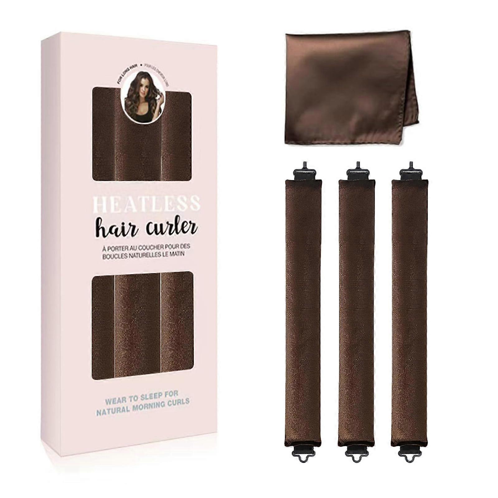 Heatless Hair Curler with Satin Bonnet for Overnight Natural Curls, 3PCS for All Hair Types Brown