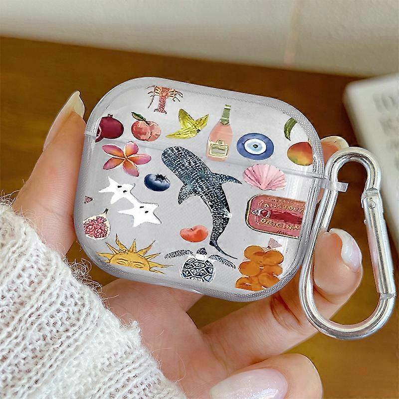 Beach Illustration Paint Shockproof Headphone Case for AirPods Pro 3/Pro 2/Pro, AirPods 1or2, 3, 4 Earphone Cover with Carabiner