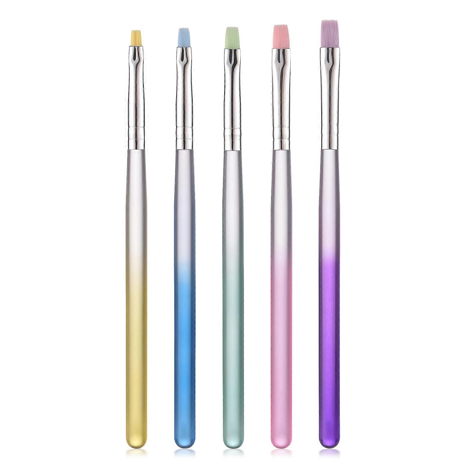 Nail Art Brush Set Flat Head Acrylic Gel Polish 5pcs Professional Transparent Handle Nylon Bristles
