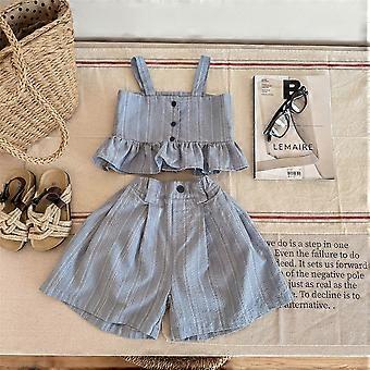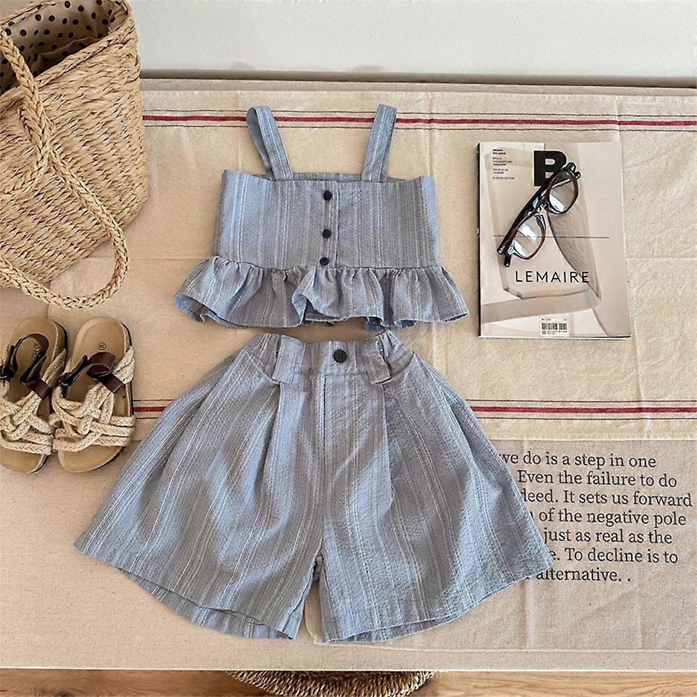 Bear Leader Girls Suit Summer 2023 New Korean Version of The Short-sleeved Bubble Sleeve Shirt + Wide-legged Pants Girls Suit