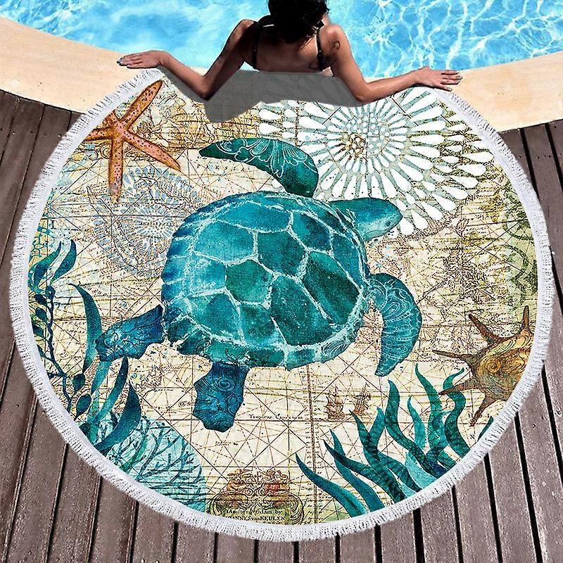 Round digitally printed marine life beach microfiber yoga mat, European and American children's beach towel