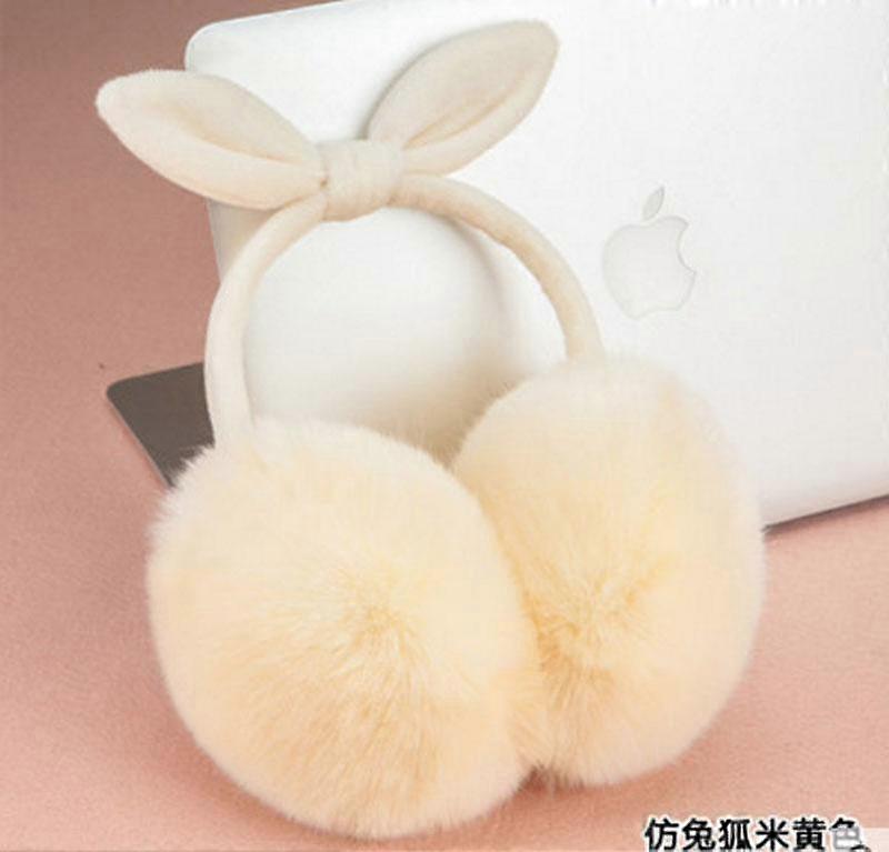 Cute Bowknot Women Faux Rabbit Fur Earmuffs Winter Warm Adjustable Earmuffs