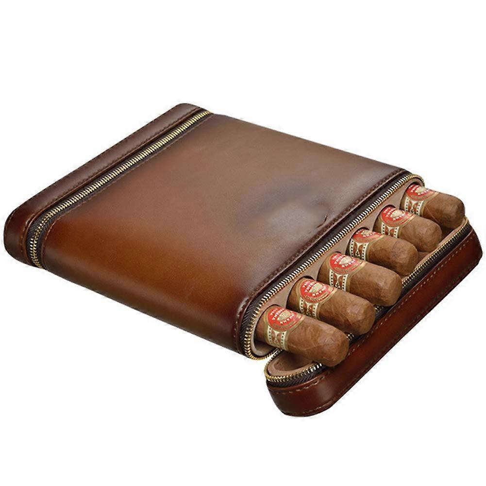 Cigar Travel Humidor Leather Case with Builtin Humidifier Cedar Wood Holds 6 Cigars Brown