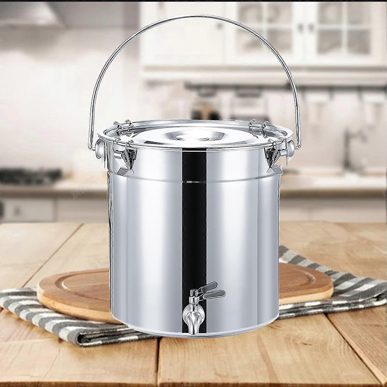 34L Stainless Steel Stock Pot with Spigot and Lid, Large Capacity Soup and Beverage Storage