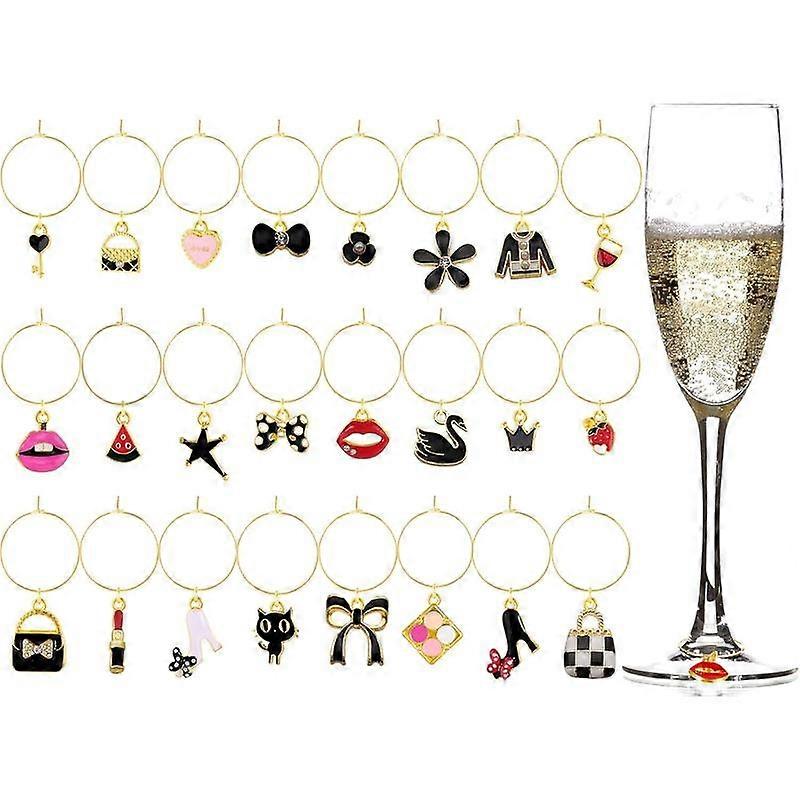 24 count Glass Charms Markers Tags for Stem Glasses Drink Markers Charm Rings Identifier for Bachelorette Tasting Party Favors Decorations