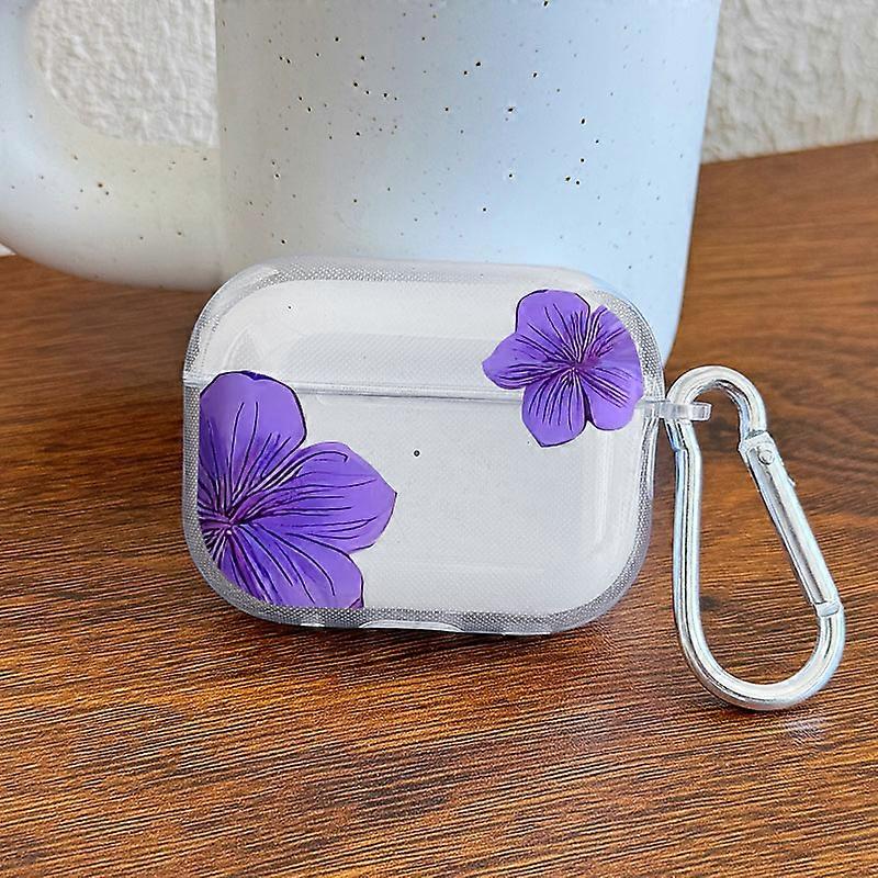 Purple Flower Pattern Clear Shockproof Headphone Case for Airpods Pro2/Pro3/Pro, Airpods 1/2/3/4 Earphone Cover with Carabiner