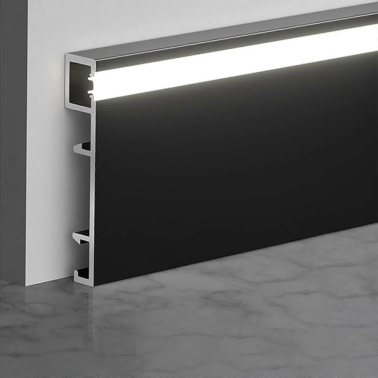 Matte Black LED Aluminium Skirting Board Trim Kit, 4 Pack 50x2500mm, Durable Wall Mount