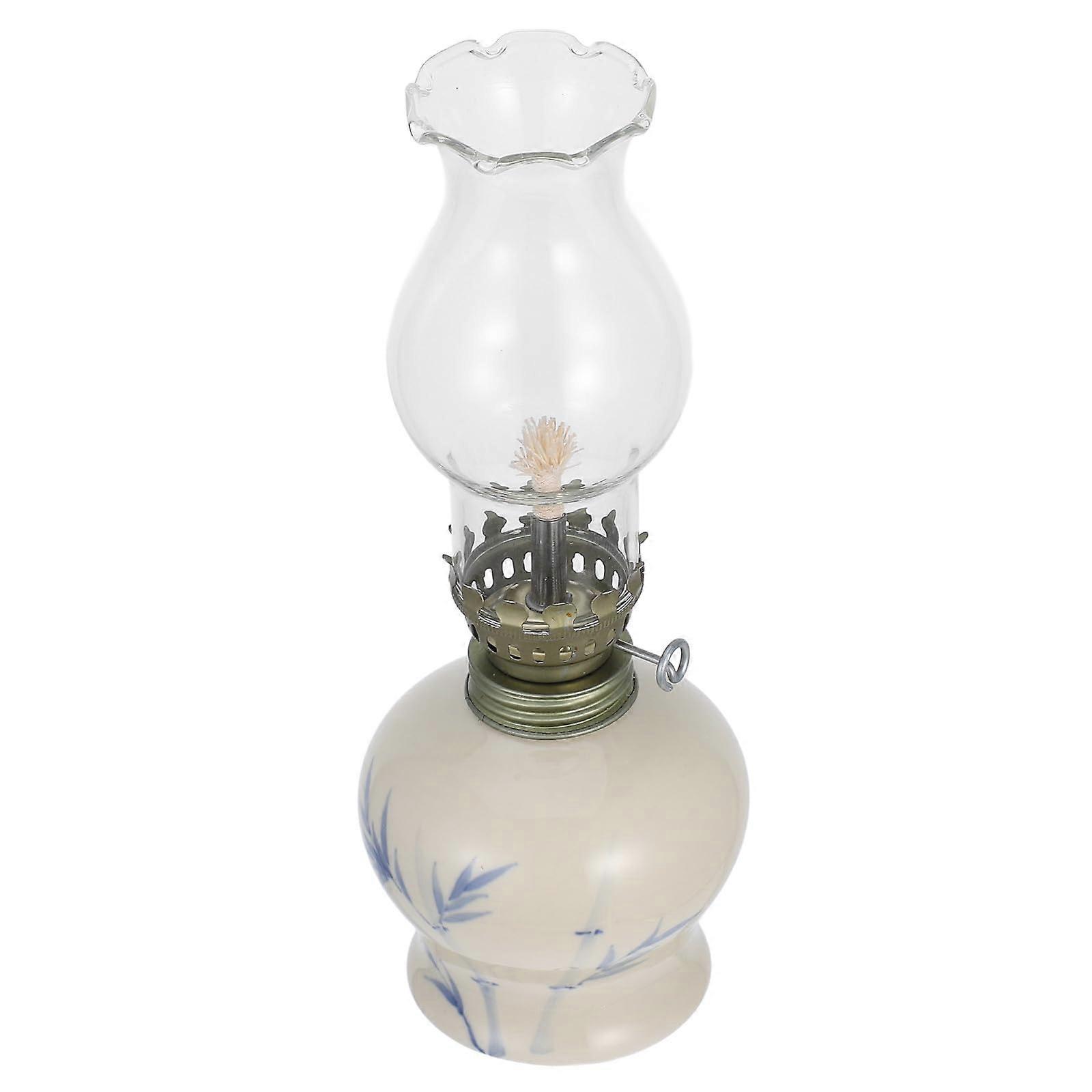 Vintage Ceramic Kerosene Oil Lamp with Refillable Glass Lantern for Indoor Outdoor Emergency Lighting