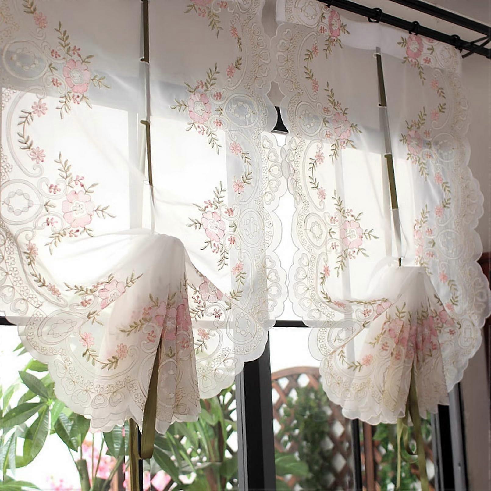 Window Valance Sheer Floral Embroidery Rod Pocket TieUp Roman Shade for Small Windows 33'x45'