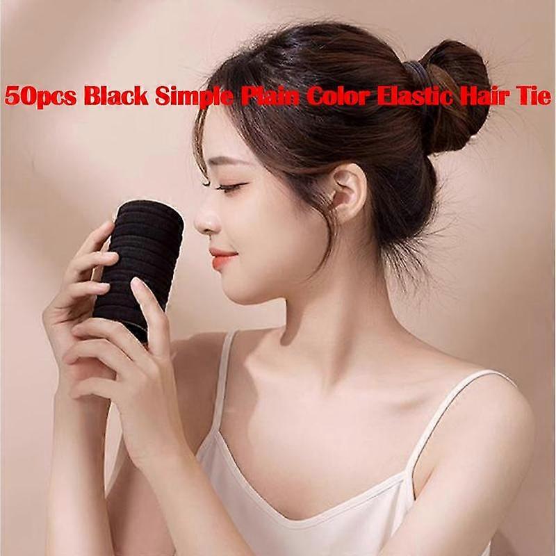 50pcs Black Simple Plain Color Elastic Hair Tie, 50pcs Summer Daily Black Elastic Hair Accessory for Women, Minimalist Ponytail Holder, Hair