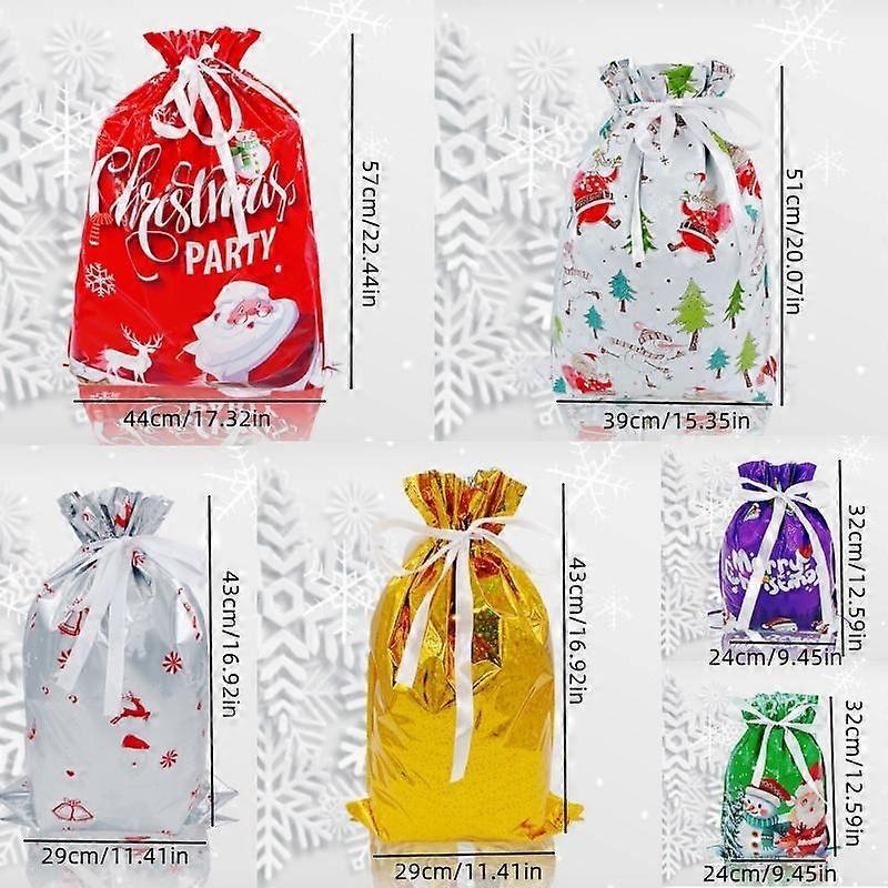 Christmas Gift Bags Set, 6 Pieces with 6 Patterns, PVC Drawstring Packaging, Holiday Party Favor Bags, Festive Christmas Theme, Party Favors
