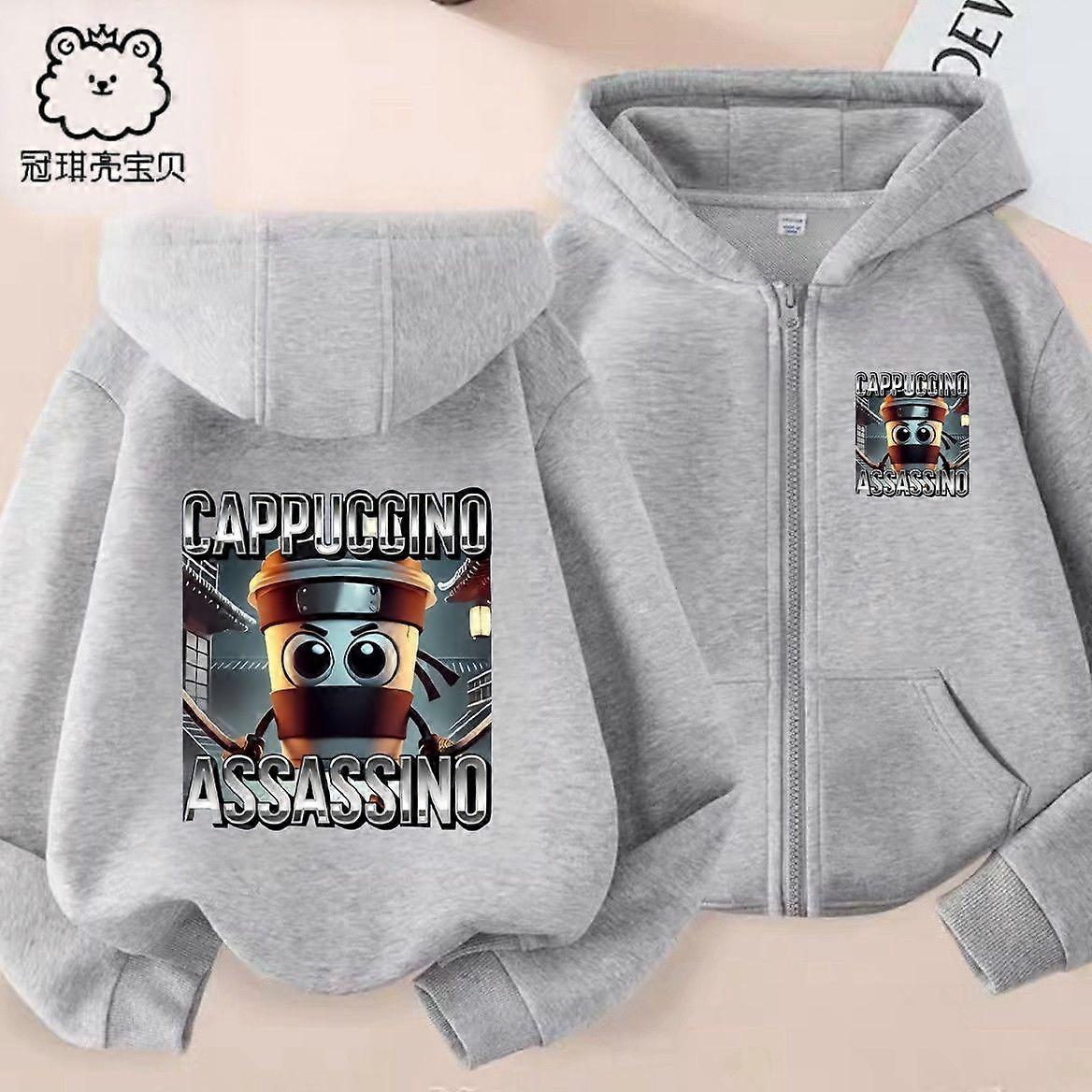 Italian Brainrot Hooded Coat for Child Anime Cappuccino Assassin Cartoon Fashion Zip Jacket Boy Girl Cute Top Kids Clothes Gift