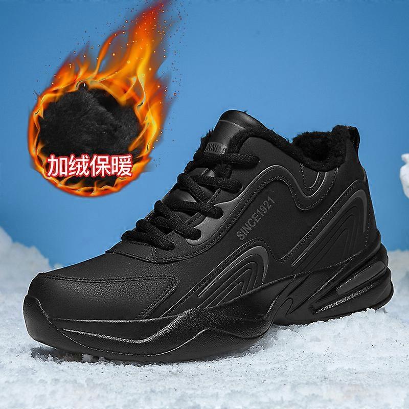 Men's waterproof fleece-lined sports shoes, student winter non-slip warm running casual travel shoes