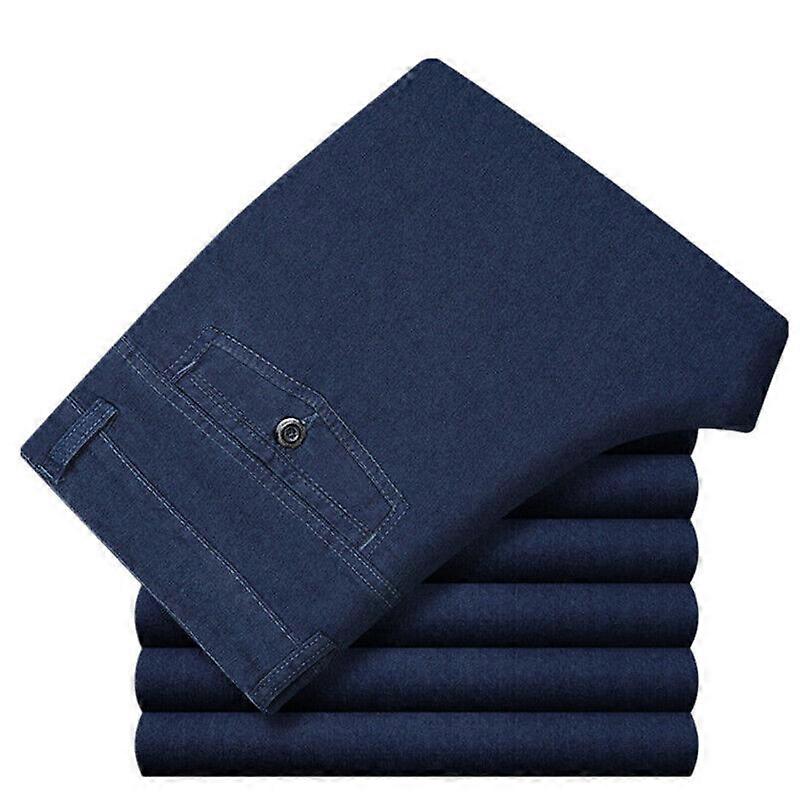 Men Denim Pants Classic Straight Leg Stretch Work Jeans Trouser All Waist Casual