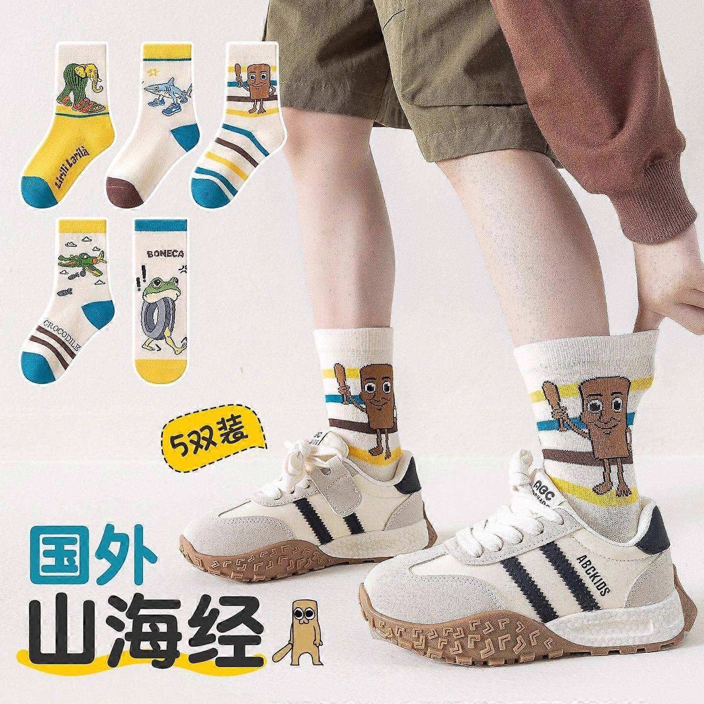 5pcs Kawaii Italian Brainrot Boys Socks Cartoon Tungtung Sahur Kids Sock Children Autumn Pure CottonThickened Medium Tube Sock