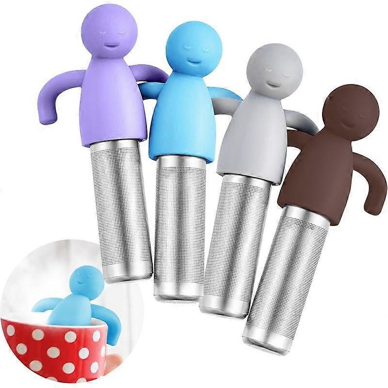 4 count Infuser for Loose Cute Fine Mesh Strainer Stainless Steel Filter Ball Diffuser Steeper for Teacups Teapots (Gray,Blue,Dark Brow