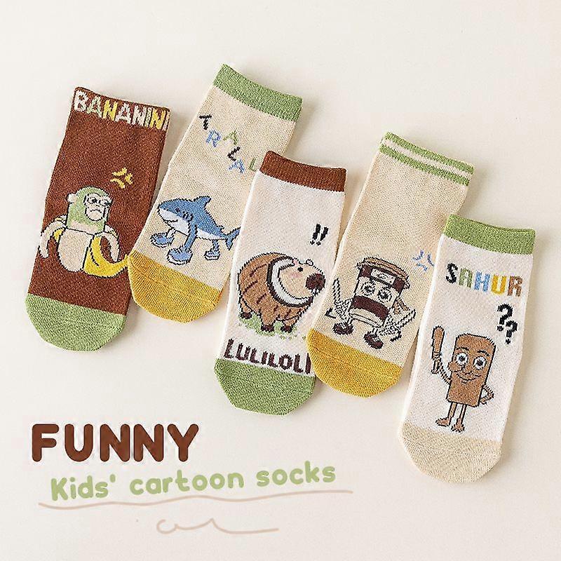 5 Pairs Italian Brainrot Children's Socks Cartoon Spring Autumn Tungtung Sahur Kids Sock Girls Cute Boy Toddler Socks 1-12 Years